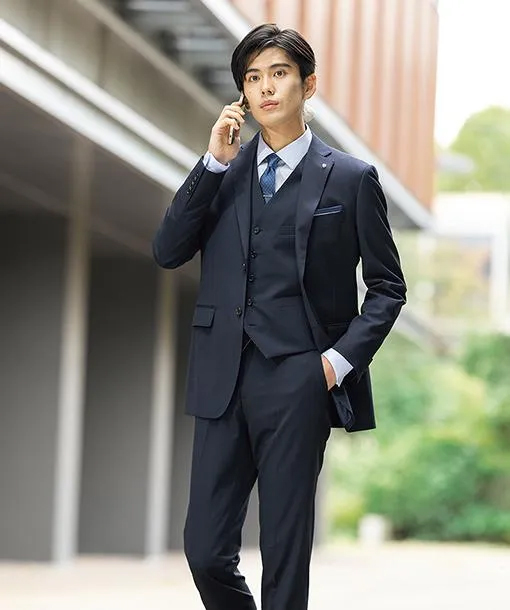 立体的なシルエットで適度なスリム感がポイントのブランドです。ストレッチ性やシワになりにくい素材を使用する等、スーツ初心者にも扱いやすくなっています。2パンツや洗える機能付きなど幅広いニーズにお応えします。入学式はもちろん入社式等にもおススメです。